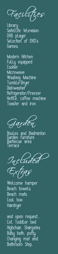 • Hairdryer Starter supplies of charcoal for the Barbeque, dishwasher