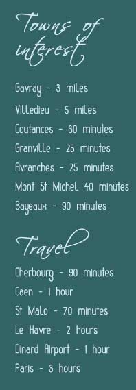 • Avranches (25 minutes away) Museum of the 2nd World War and lovely